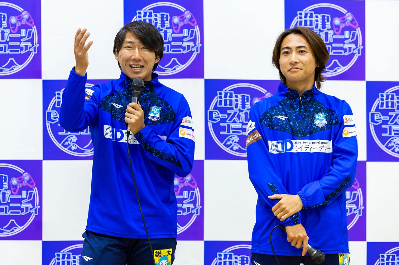 「賴重秀一沼津市長とアスルクラロ沼津和田選手、持井選手にご登壇いただきました。